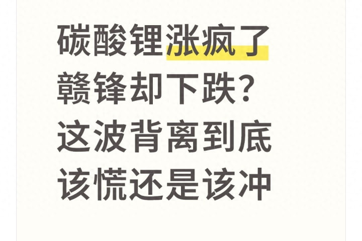 天猫配资网官网 碳酸锂涨疯了赣锋却下跌? 这波背离到底该慌还是该冲